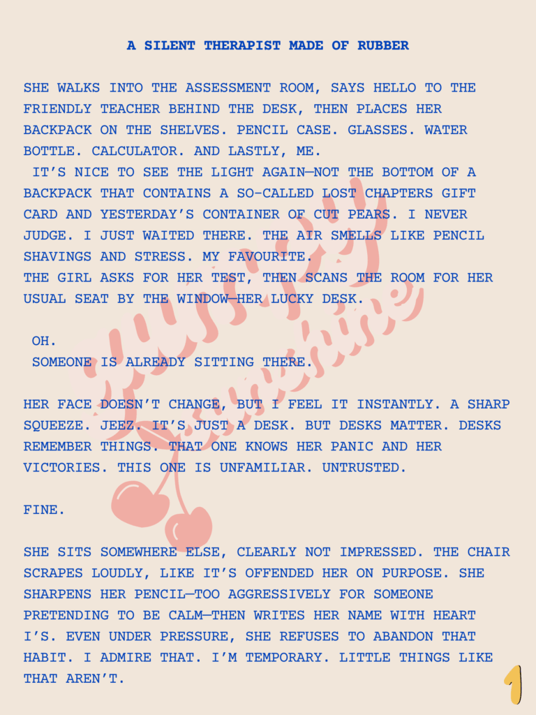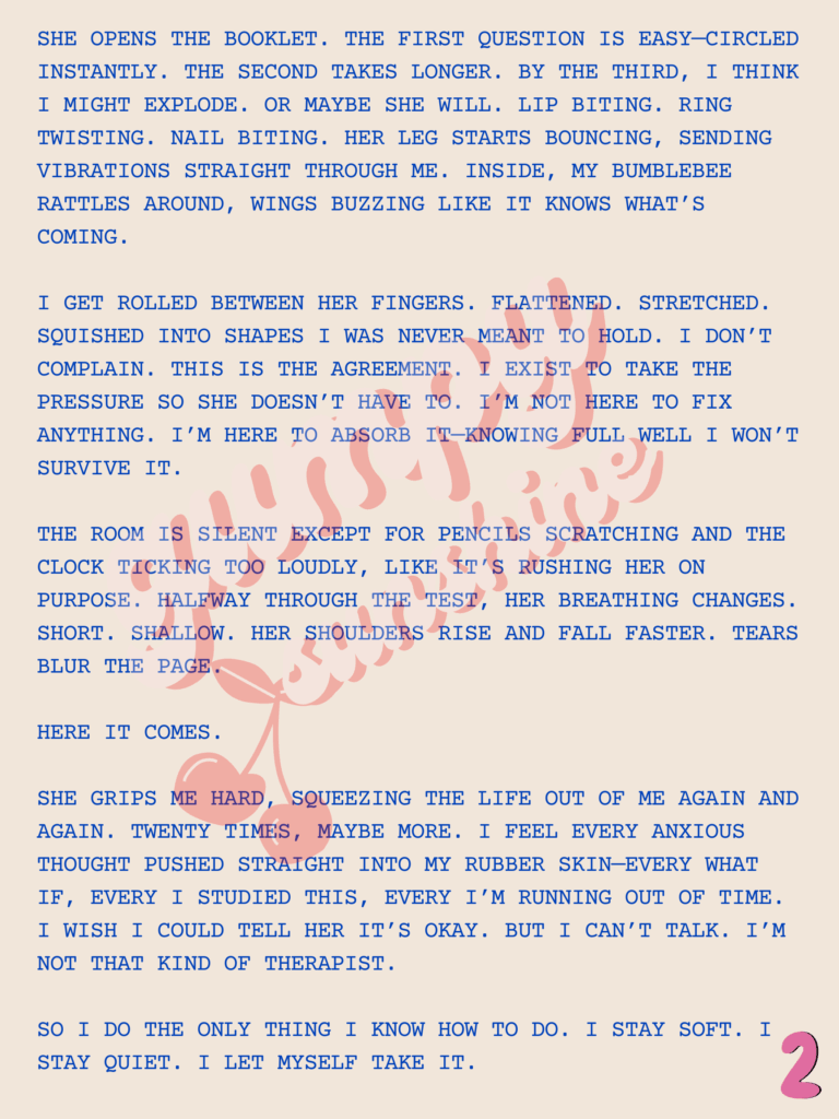 I wrote about a personal experiece during a math exam, from the perspective of one of my fidgets. Enjoy! 🍿